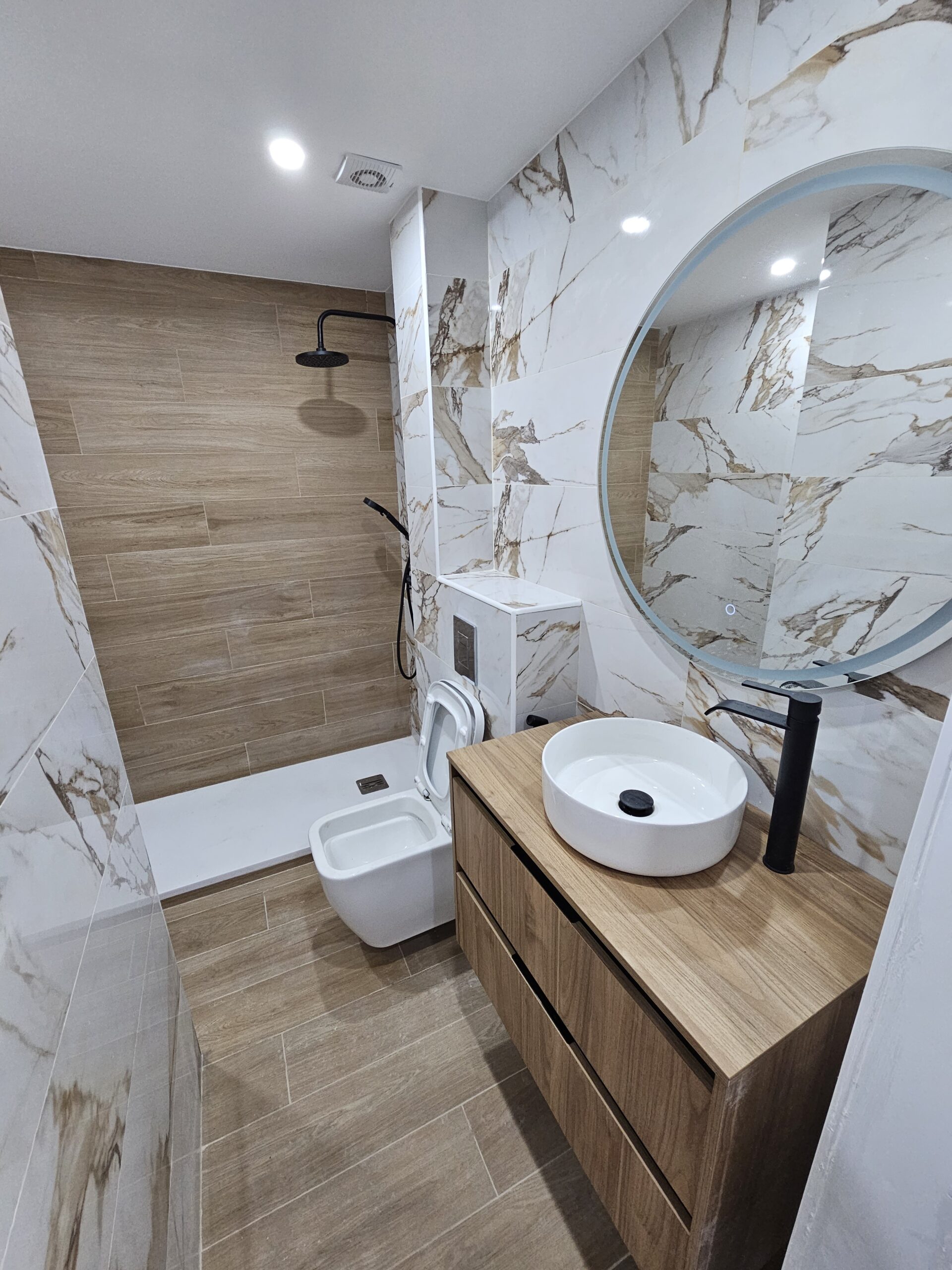Instalación de platos de ducha, muebles, mamparas y sanitarios con acabados de calidad.